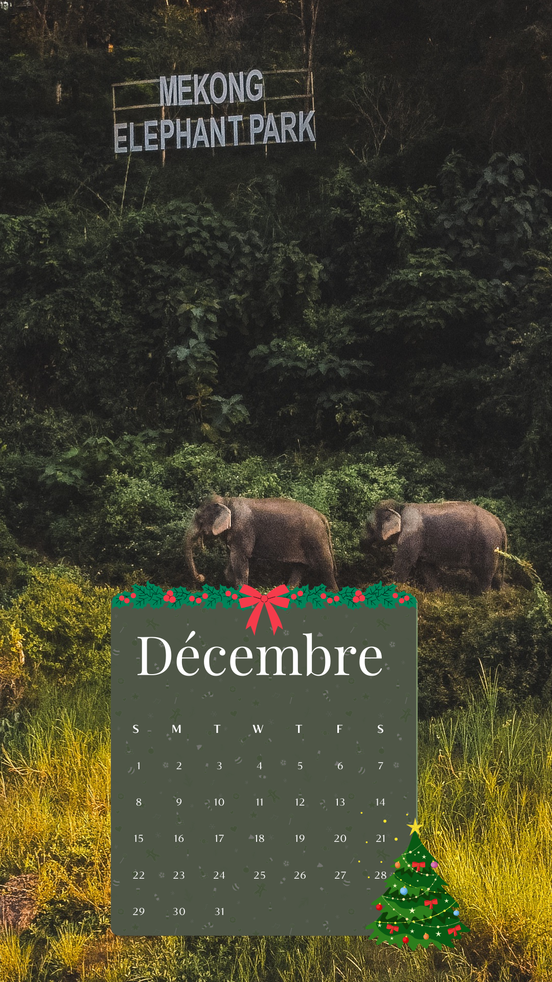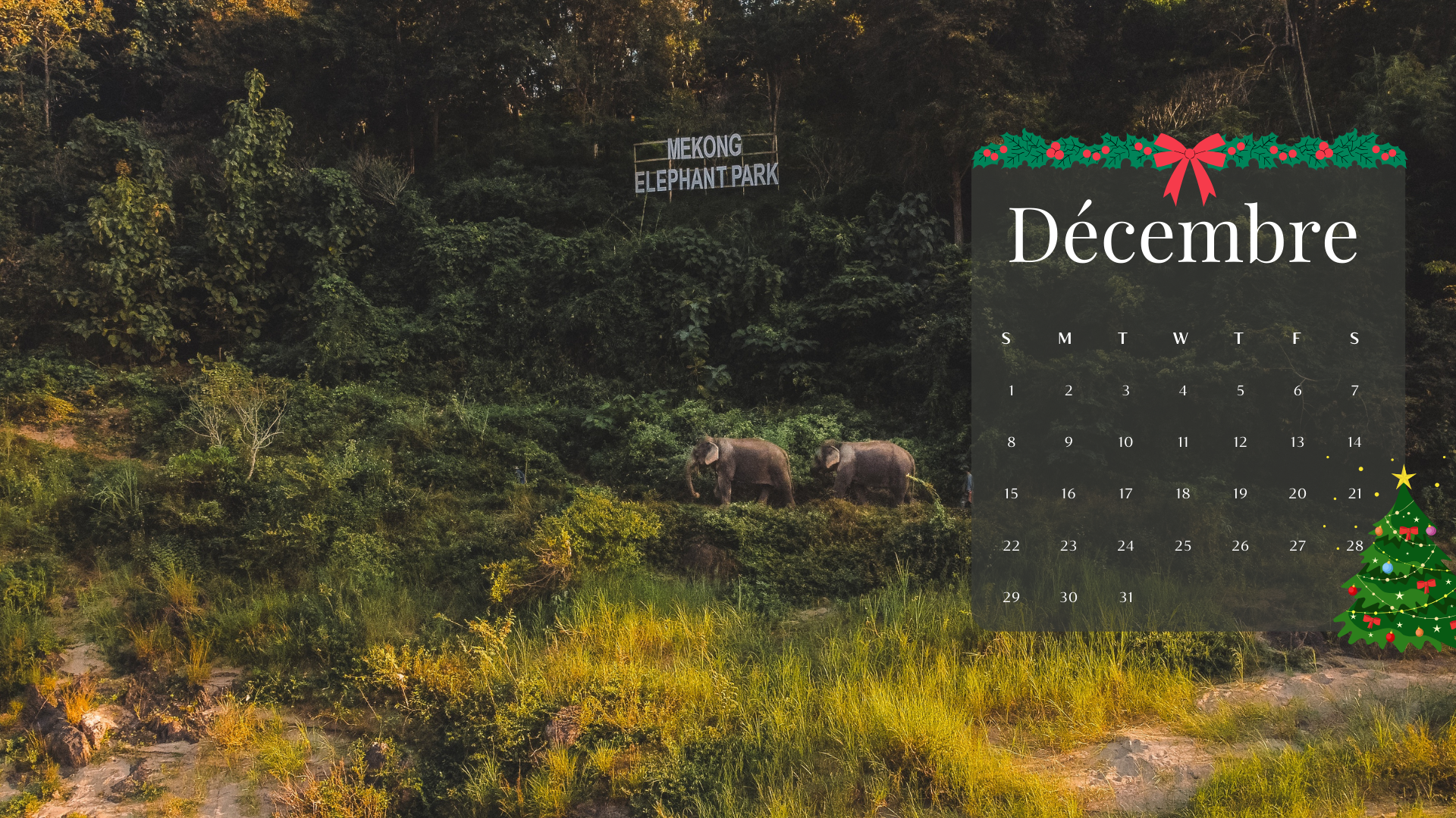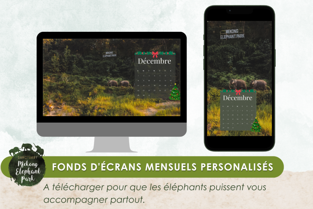 Les fêtes de fin d’année approchent à grands pas. Nous aimerions dédier le fond d’écran de décembre à une vue de notre sanctuaire, la seconde maison de Wendy et des cornacs, le refuge de nos éléphants. Nous espérons que ce fond d’écran apportera un peu de festivité sur votre écran et un sourire sur votre visage.