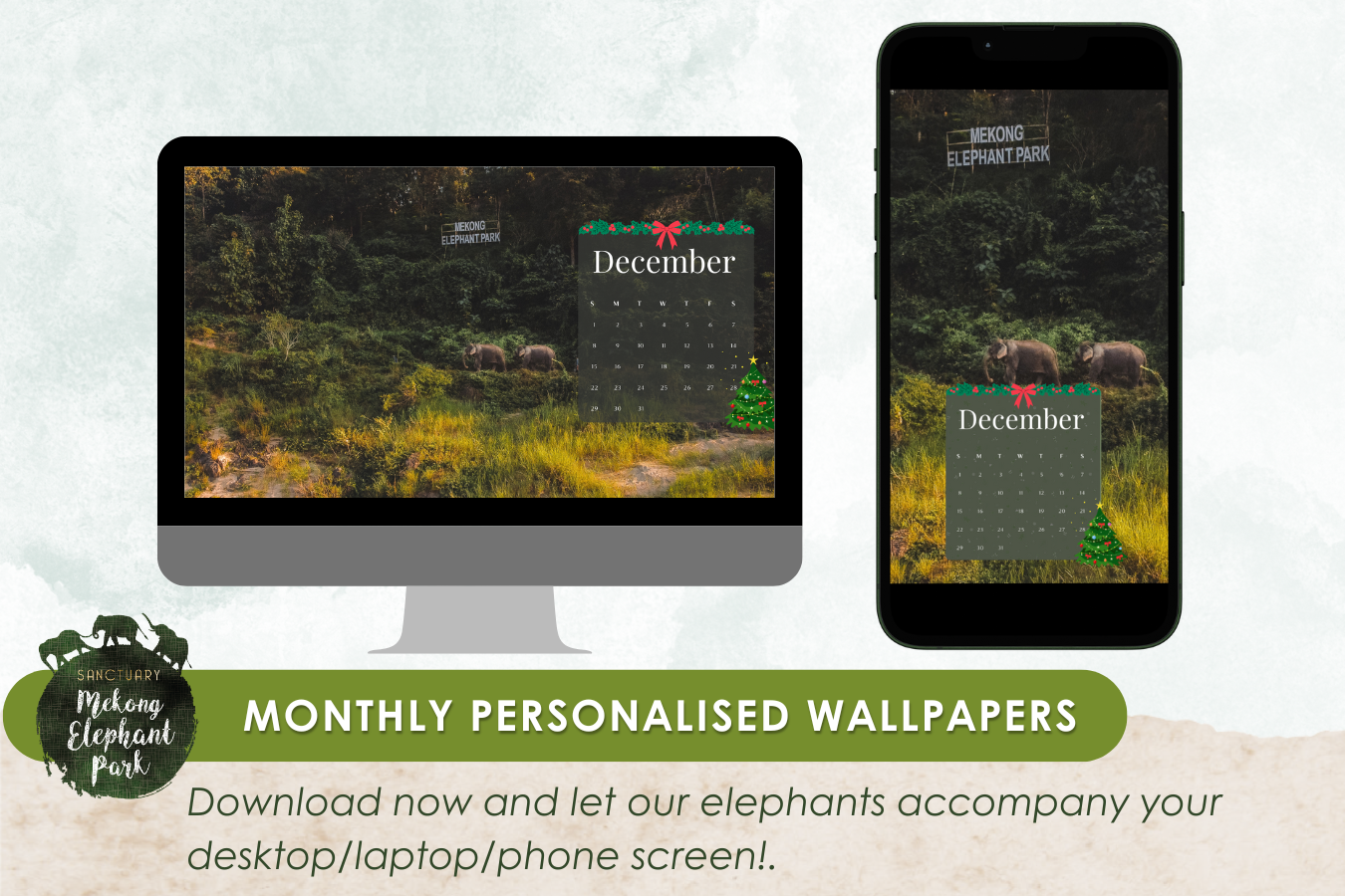 Festive season is right around the corner🎄We would like to dedicate December’s wallpaper to feature a view of our sanctuary, the second home of Wendy and the mahouts, the safe haven for our elephants. We hope this wallpaper brings a bit of festivity to your screen and a smile to your face.