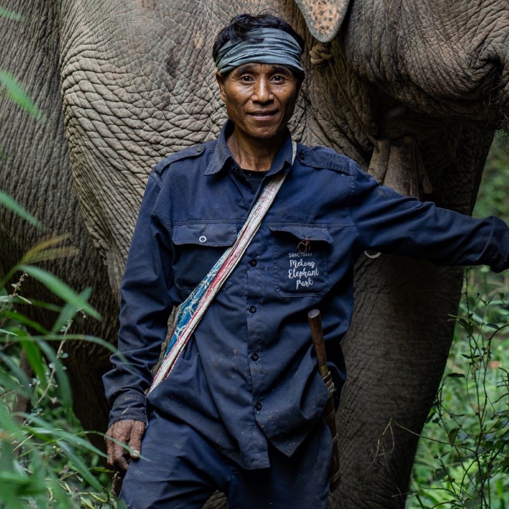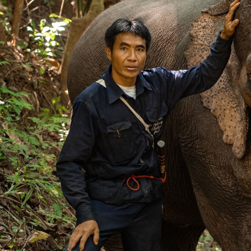 Pan est sans doute le cornac le plus expérimenté de notre équipe. Issu d’une longue lignée de propriétaires et soigneurs d’éléphants, il a grandi avec eux et travaille à leurs côtés depuis l’adolescence.