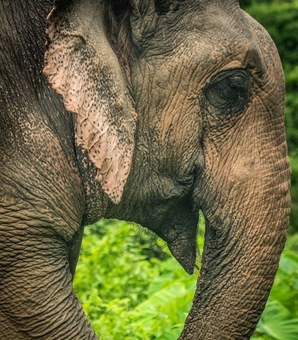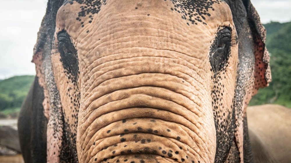 Arrivé au parc en 2016 depuis le village de Ban Bimi, après plusieurs années dans l’exploitation forestière, Kham Khoun porte lui aussi les traces de son passé. Il a notamment perdu une partie de sa trompe à l’âge de quatre ans, et a depuis appris à vivre et à se nourrir malgré ce handicap.